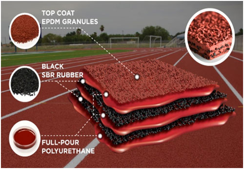 Kauçuk hemen hemen tüm kimyasal maddelere dayanıklı bir plastik malzemedir ve sürtünme katsayısı en düşük katı maddedir. Granül formda rekreasyon alanlarında kullanılmaktadır. Hava şartlarına dayanıklı olması, elastikiyet özelliği ve çekme mukavemetine sahip olması gibi çok fazla avantajlara sahiptir. Bu sebeple Asfalt yapımı, yürüyüş yolu, spor ve oyun alanı gibi çok çeşitli amaçlar için kullanılmaktadır.