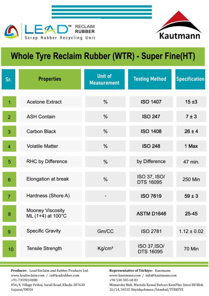 Geniş bir yelpazede tam lastik geri dönüşüm kauçuğu sunuyoruz. Yüksek kalite standardı ve sıkı kalite kontrol sistemi ile bu seri uluslararası standartlara uygun olarak üretiliyor.